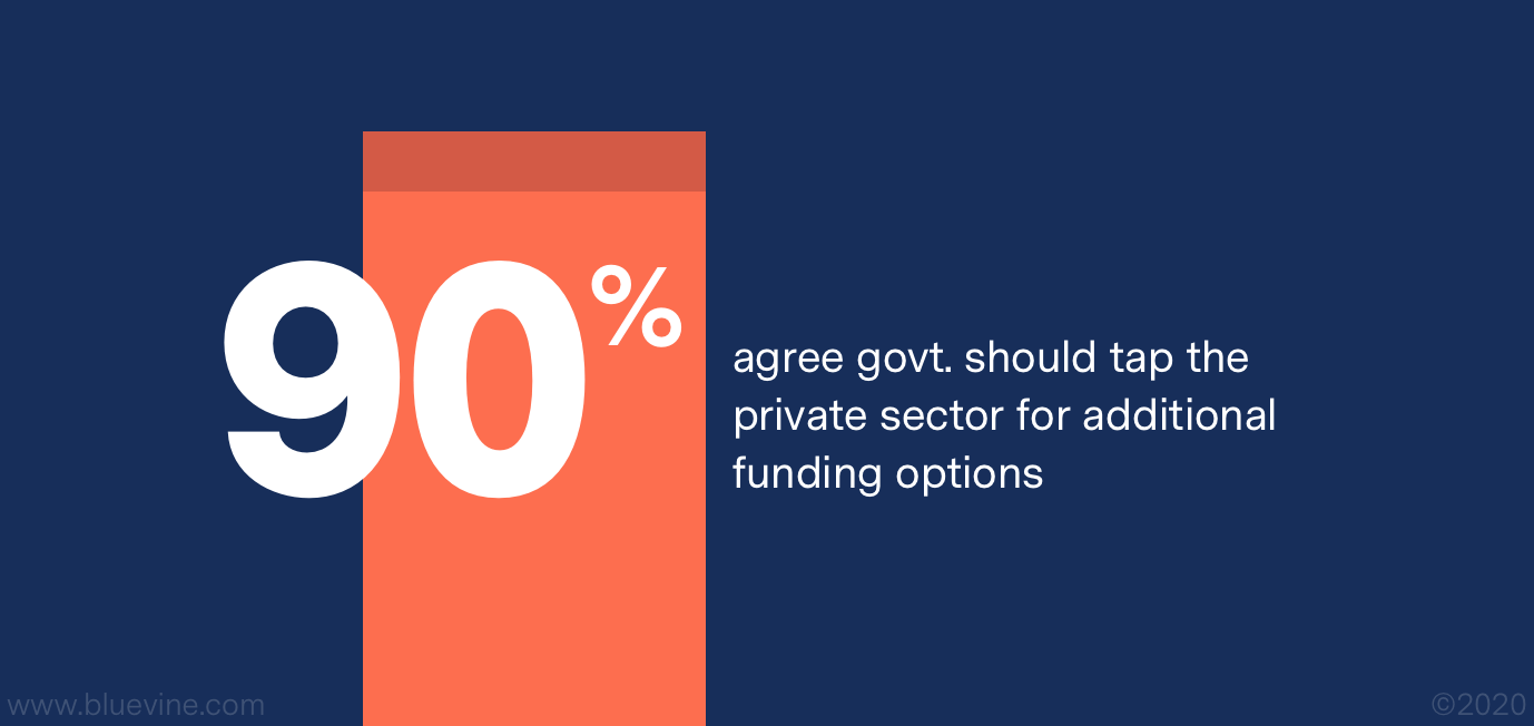 - Nearly all SMBs agree (90%) that the government should tap the private sector to enable additional funding options